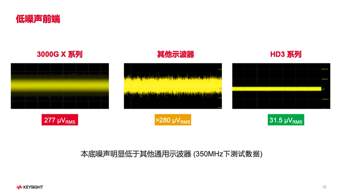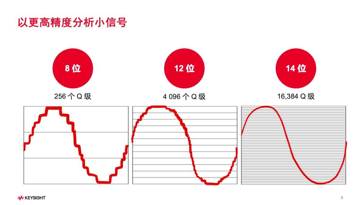 核心技术亮点在于14位ADC的应用。相比竞品普遍采用的12位ADC,InfiniiVision HD3系列将信号离散级别从4096提升至16384,垂直精度提高4倍,底噪低于50 VRMS。