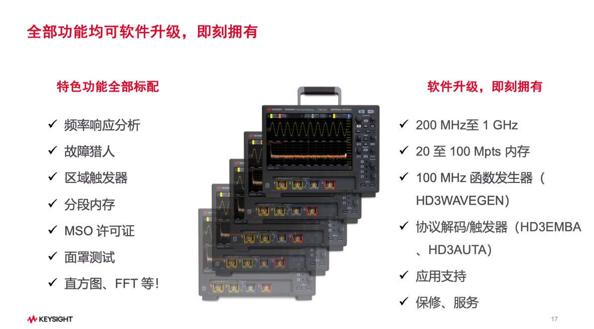 结语:是德科技InfiniiVision HD3系列通过14位ADC技术革新,重新定义通用示波器行业标准,推动市场供应向更高精度迈进,同时软件升级助力工程师高效解决行业应用中的复杂测试挑战。