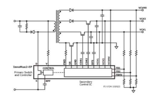 从市场供应角度看,该方案采用PI高散热效率的InSOP24和InSOP28封装,结合PCB冷却功能,无需额外使用散热片,进一步降低了系统成本和复杂度。在电源输出方面,InnoMux-2提供双输出和三输出定电压(CV)选项,并支持其中一个输出专用于定电流(CC)驱动,非常适合为监测器中的LED供电或用于内部电池的高速充电。