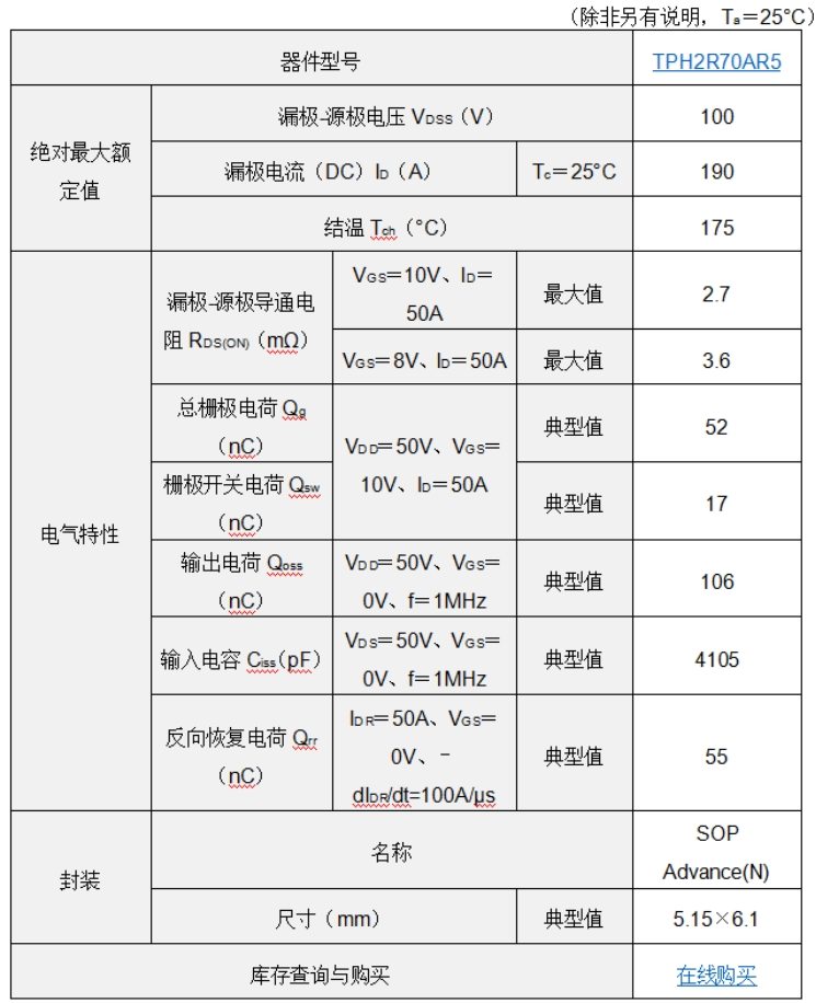 在技术性能上,TPH2R70AR5实现了业界领先的突破。通过优化器件结构,与上一代U-MOSX-H系列产品TPH3R10AQM相比,漏源导通电阻(RDS(ON))降低约8%,总栅极电荷(Qg)降低37%,RDS(ON)×Qg改善42%。同时,应用寿命控制技术后,反向恢复电荷(Qrr)改善38%,RDS(ON)×Qrr提升43%。这些关键指标的平衡优化,有效减少了导通及开关损耗,显著提高电源系统效率和功率密度,为工业设备节能提供新解决方案。