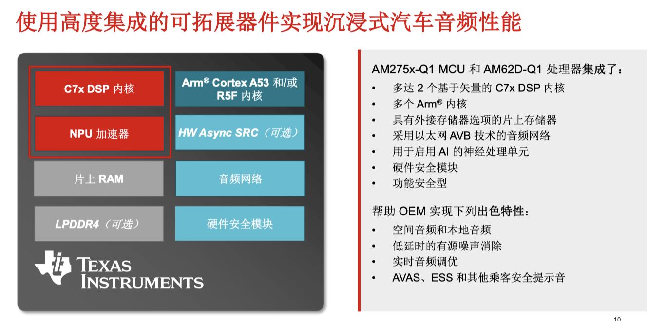 针对车内音频体验升级,TI发布AM275x-Q1和AM62D-Q1两款音频处理芯片,均集成最新C7000 DSP内核。基于256位矢量运算,支持单周期访问L2存储器,计算速度远超市场主流方案,最高主频达1GHz,每内核提供40GFLOPS运算能力。片上大容量存储(最多10.75MB)无需外置DDR即可满足大部分音频应用需求。这些芯片特别适配沉浸式3D立体声和主动降噪场景,在12路3D立体声算法中,CPU占用率不到10%,留出资源处理其他音频任务。市场供应分析显示,该系列芯片通过Xilinx代理渠道推广,助力不同车型需求。