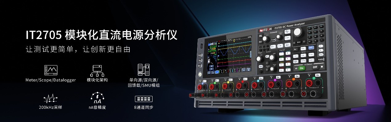 在电子行业测试需求持续升级的背景下,多设备协同测试已成为常态,但接线繁琐、设备不同步及操控复杂等问题严重制约测试效率。为此,ITECH艾德克斯于8月1日正式推出全新IT2705直流电源分析仪,面向研发验证与产线集成测试场景。该产品聚焦半导体IC、电池、汽车电子等行业,提供集成化、高效率的测试解决方案,旨在重塑测试体验。
