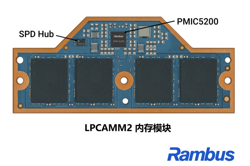 中国北京,2025年5月15日 作为业界领先的芯片和半导体IP供应商,致力于使数据传输更快更安全,Rambus Inc.(纳斯达克股票代码:RMBS)今日宣布推出面向下一代人工智能(AI)个人电脑( PC)内存模块的完整客户端芯片组,包含两款用于客户端计算的全新电源管理芯片(PMIC)。PMIC是实现高效供电的关键,能够为先进的计算应用提供突破性的性能表现。这两款业界领先的全新RambusPMIC分别是适用于LPDDR5 CAMM2(LPCAMM2)内存模块的PMIC5200,以及适用于DDR5 CSODIMM和CUDIMM的PMIC5120。