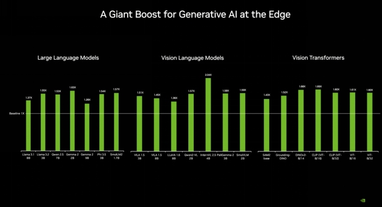 值得注意的是,NVIDIA还通过"Super Mode"软件更新,使Jetson Orin NX和Orin Nano系列产品也能实现1.7倍的生成式AI性能提升。这一策略进一步扩大了NVIDIA在边缘AI市场的覆盖范围,强化了其作为行业领导者的地位。随着AI领域从特定任务模型向基础模型转变,Jetson Orin Nano Super及其系列产品的推出,为开发者提供了一个易于上手的平台,帮助他们将创意转化为现实应用。