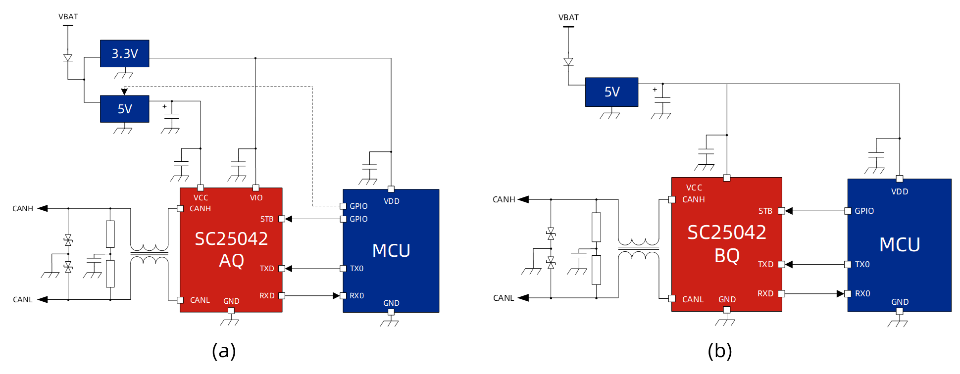 SC25042Q系统框图:(a) 3.3VMCU环境;(b) 5VMCU环境