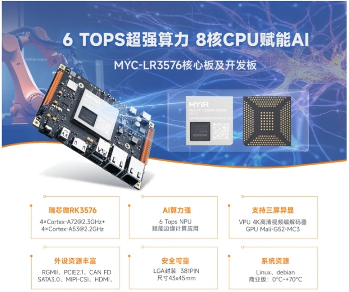 RK3576核心板的核心优势在于其卓越的AI算力,搭载四核A72与四核A53处理器,主频高达2.2GHz,结合6 TOPS的NPU加速器,支持多种深度学习框架。