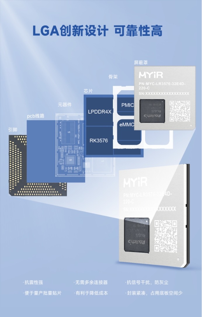 米尔RK3576核心板采用LGA创新设计,不仅提高了可靠性,还节省了连接器成本。