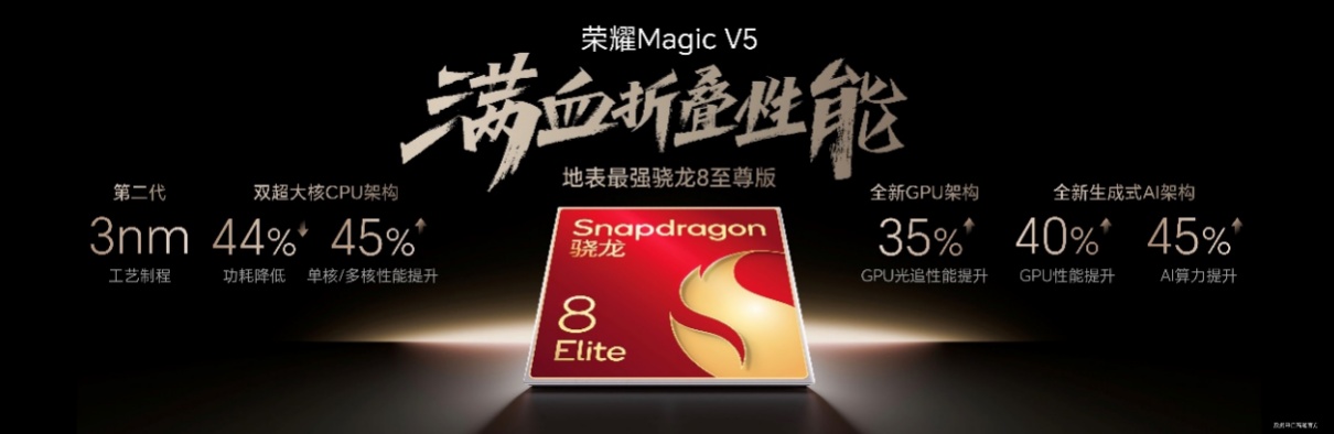 性能方面,Magic V5是2025年唯一配备骁龙8至尊版八核满血芯片的折叠屏手机,杜绝性能阉割,高负载游戏和多任务处理流畅无阻。影像系统配备全焦段三摄,1/2英寸超大传感器,支持6400万像素和f/2.5光圈,辅以AI超级长焦等功能,树立折叠影像新标杆。通信能力覆盖25个5G频段和谷歌全家桶,北斗卫星通信确保全球连接。
