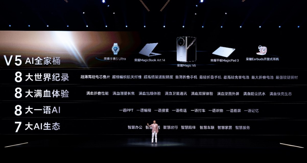 2025年7月2日,荣耀在深圳举办新品发布会,正式推出两款创新产品:超薄折叠旗舰Magic V5和高端智能手表5 Ultra。此次发布标志着荣耀在AI驱动领域的深度布局,产品融合尖端技术,重塑智能手机与穿戴设备行业标准,为用户带来革命性智能体验。