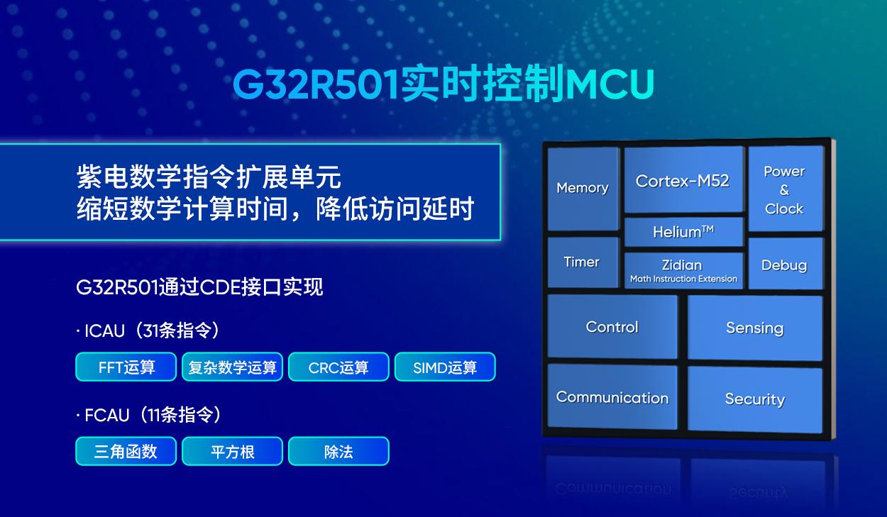 G32R501的核心优势在于其双核革新设计,支持同构并行工作,主频高达250MHz,实时算力可媲美800MHz Cortex-M7内核。内置单/双精度FPU和Arm Helium技术,显著提升数字信号处理和机器学习性能,同时通过CDE接口扩展数学指令加速单元,缩短计算延迟,增强系统实时性。此外,该芯片配备640KB Flash(分为512KB和128KB独立单元)、128KB SRAM(支持TCM存储)及6通道DMA模块,优化数据传输效率,降低CPU负担。