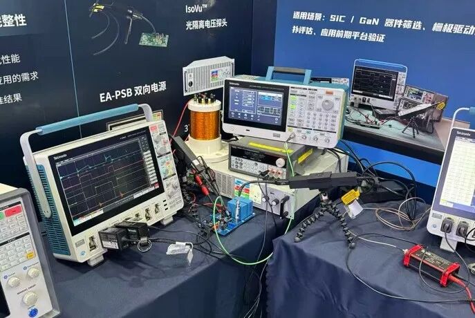 Tektronix中国代理在展会现场展示了覆盖从器件到模块再到系统的完整测试链路。在模拟半导体测试领域,提供了隔离芯片CMTI测试、电源抑制比(PSRR)以及智能失效分析等解决方案;而在宽禁带半导体测试方面,则展示了双脉冲测试、电源环路响应分析以及IMDA逆变器与电机驱动分析等先进技术。