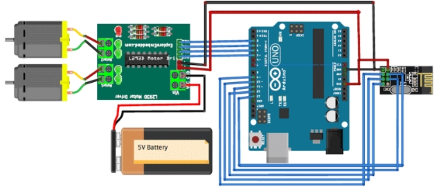 接收端电路则整合Arduino Uno、nRF24L01、两个直流电机和L293D驱动模块。nRF24L01接收数据后,Arduino根据指令控制L293D驱动电机,实现前进、后退、左转和右转。电路布局优化了电源管理,确保电池高效利用。在行业应用中,该设计适用于移动机器人,提升制造装配线的灵活性和安全性。