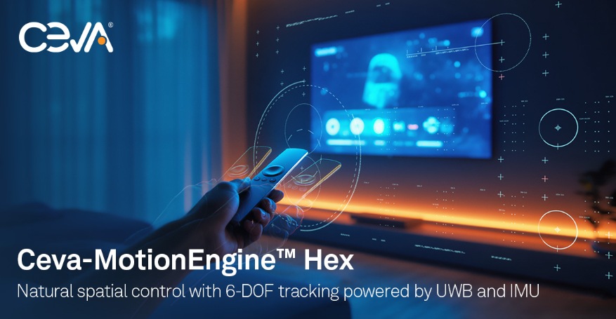 全球领先的半导体产品和软件IP授权许可厂商Ceva公司(纳斯达克股票代码:CEVA)近日发布新一代运动控制软件解决方案MotionEngine Hex,专为智能电视、游戏和物联网界面设计,提供免触控的精确空间控制功能。该方案融合超宽带(UWB)定位技术与惯性测量单元(IMU)方向感应,实现真正的6自由度(6-DOF)跟踪,使用户无需接触屏幕即可通过类似触摸屏的指向精度控制内容,大幅提升交互直观性。
