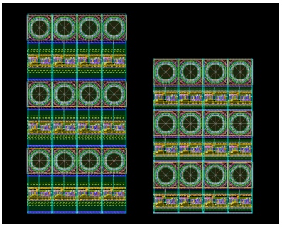 展示了新旧隔离等级的4×3 SPAD像素示例设计,新模块显著提升了布局效率。针对典型4×3 SPAD阵列(每个光学区域10×10m),采用新隔离等级后,芯片总面积可减少约25%,填充因子提高约30%。这一改进不仅提升了面积效率和探测灵敏度,还进一步优化了像素设计,为低噪声、高速单光子探测奠定基础。
