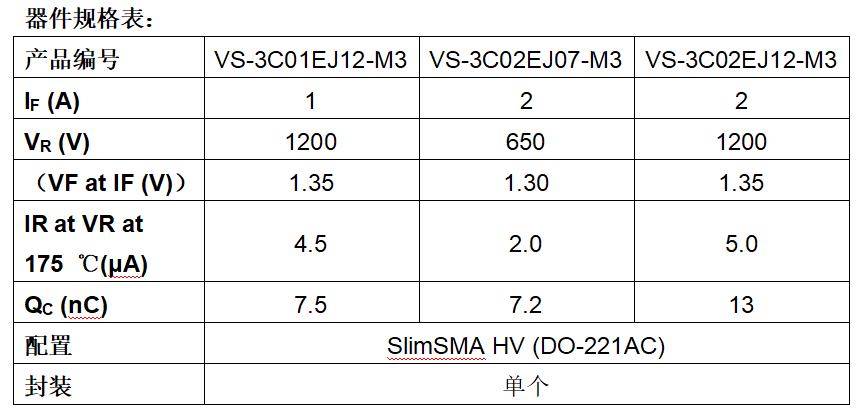 2025年7月29日,全球电子元器件行业迎来重要技术突破。美国宾夕法尼亚MALVERN及中国上海同步宣布,Vishay正式推出三款采用超小尺寸薄型SlimSMA HV(DO-221AC)封装的全新第三代碳化硅(SiC)肖特基二极管。这一系列产品型号包括2 A的 VS-3C02EJ07-M3、1 A 的VS-3C01EJ12-M3以及2 A的VS-3C02EJ12-M3,标志着高压功率半导体领域的重要进展。