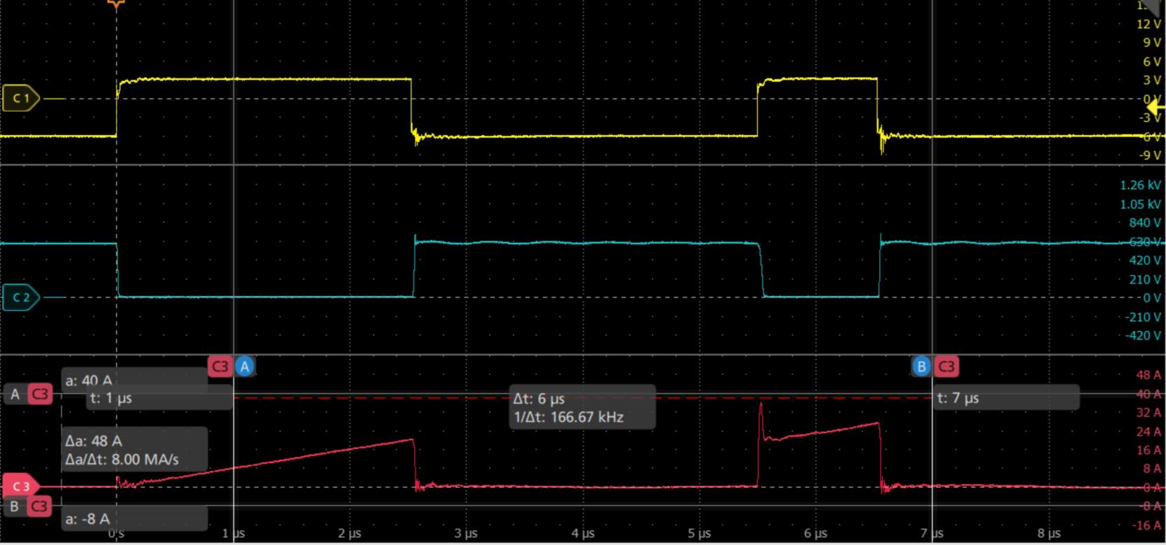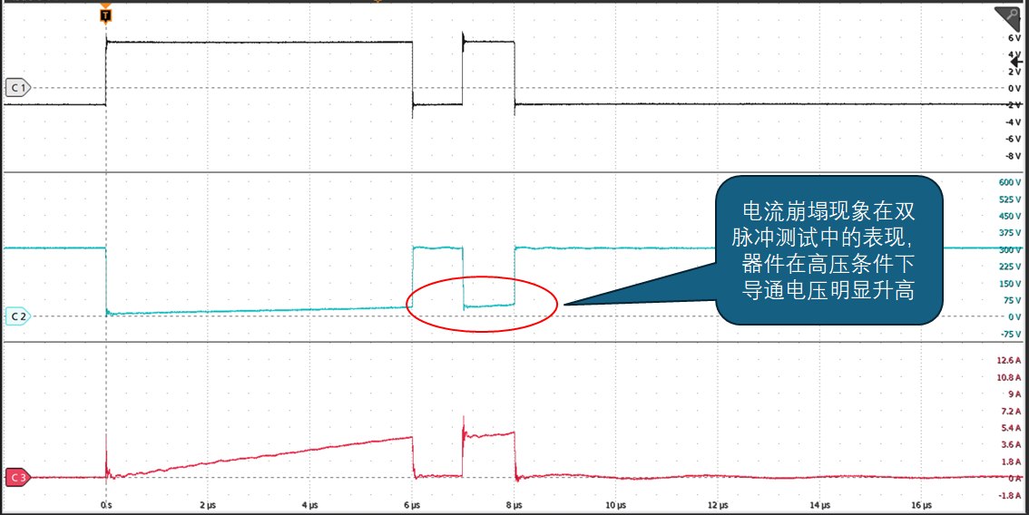 在动态开关参数测试中,传统氮化镓器件常因高压条件引发电流崩塌现象,表现为硬开关过程中导通电阻突然增大。