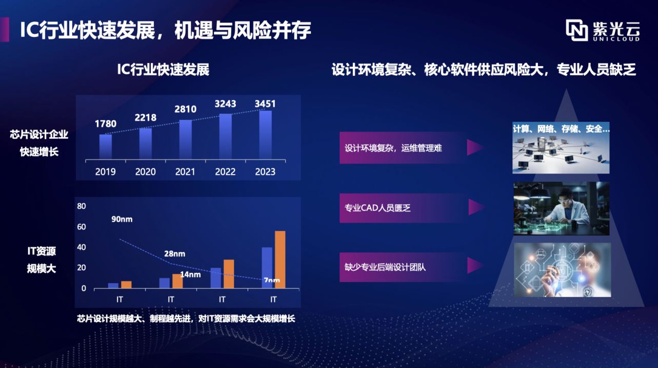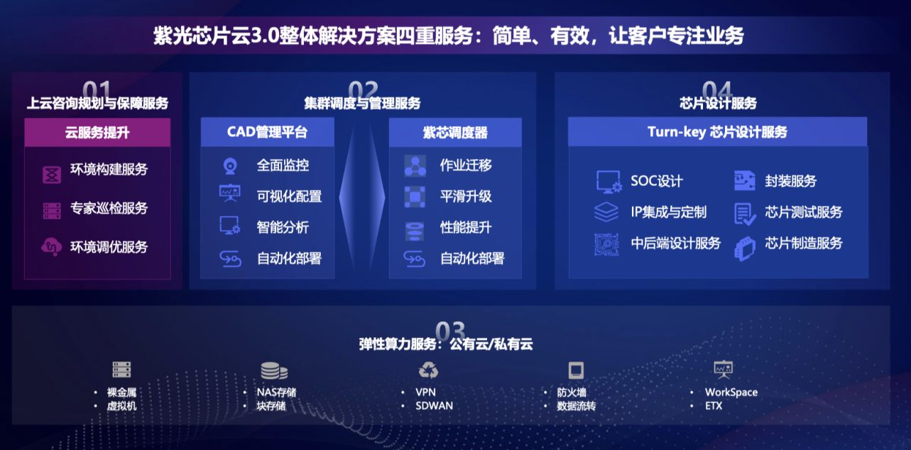 市场供应动态显示,芯片设计企业面临部署难题。紫光云系统部企业业务部部长陶豆指出,中小型企业倾向于将设计前后端全部上云,而大型企业则因安全顾虑多采用后端上云模式。芯片云3.0通过私有云、公有云和混合云资源池的一站式方案,解决资源分散与利用率低的痛点。